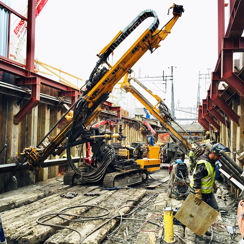 Vid borrning i känsliga miljöer borrar vi ibland med LMX-piloter, men oftast med den skonsamma vattenborrningen Wassara. Är det från ett parkeringstak med källarmus, eller RD-wall med 12m-rigg spelar ingen roll. Vi har gjort det mesta.